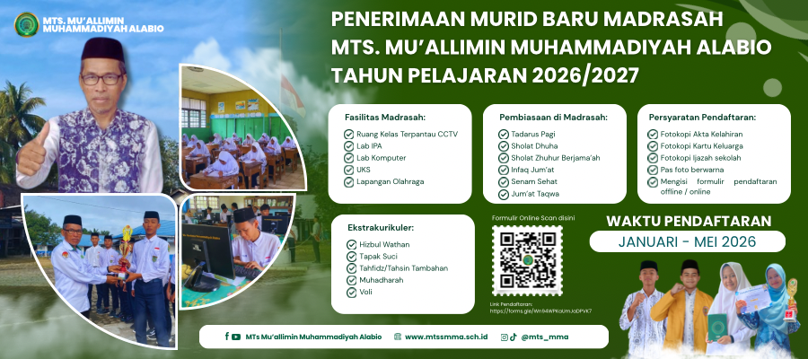 MTs. Mu’allimin Muhammadiyah Alabio kembali melaksanakan kegiatan rutin Jum’at Taqwa pada Jumat (20/02/2026) yang diikuti oleh seluruh siswa, guru, dan