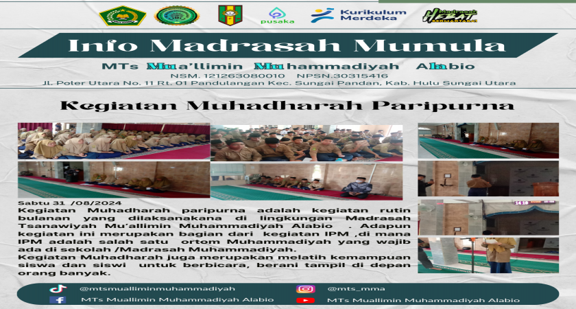 MTs. Mu’allimin Muhammadiyah Alabio kembali melaksanakan kegiatan rutin Jum’at Taqwa pada Jumat (20/02/2026) yang diikuti oleh seluruh siswa, guru, dan tenaga kependidikan